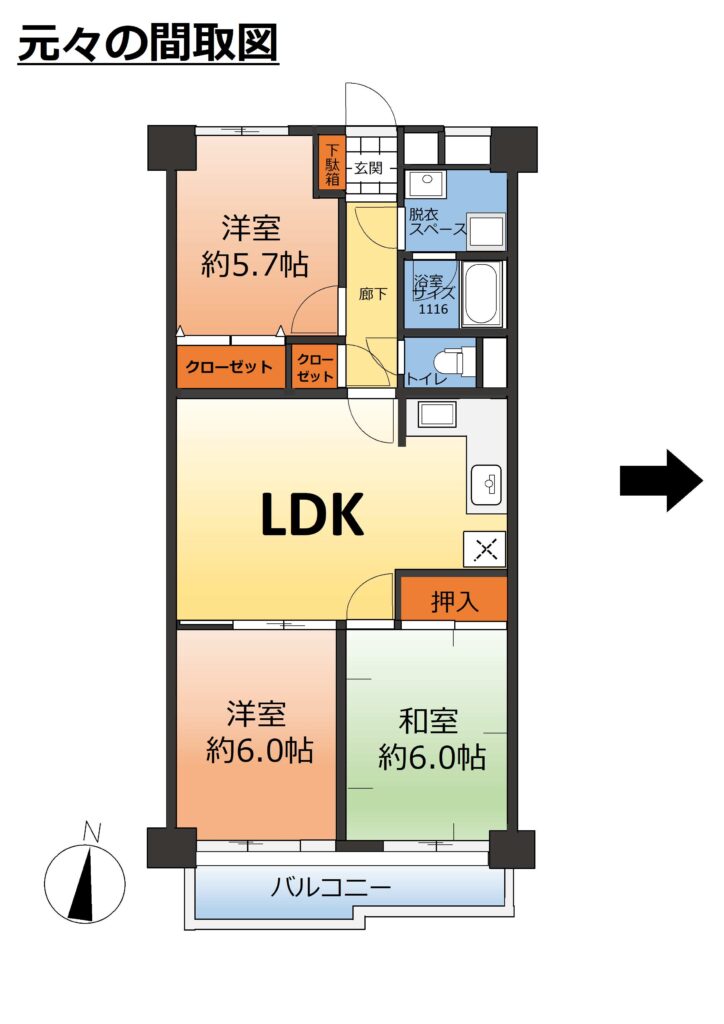・LDK+各洋室及び通路部分フローリング張替(3LDK→2LDKに間取変更)。