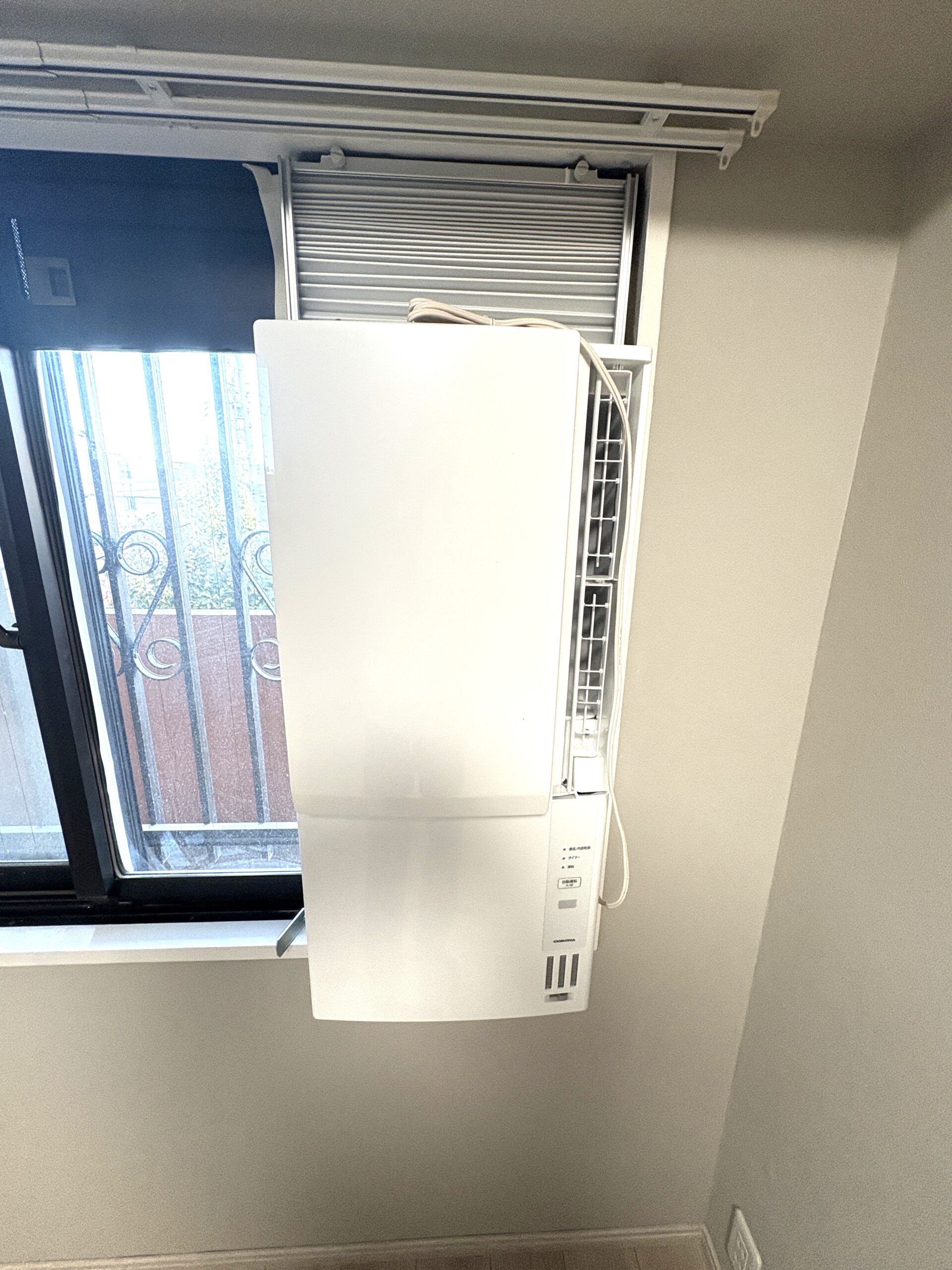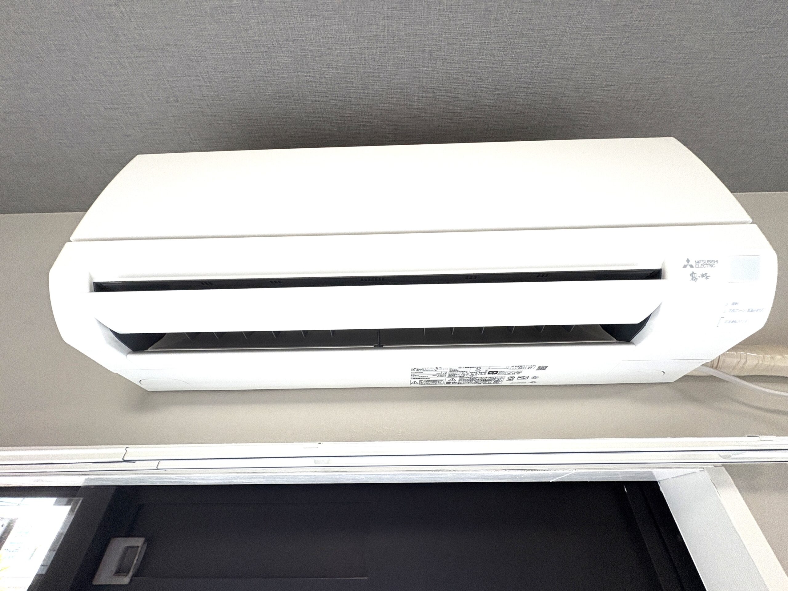 ●エアコン(左はリビング設置の200V冷房5.6Kwの三菱電機社製・右はウインドファンタイプのCORONA社製)