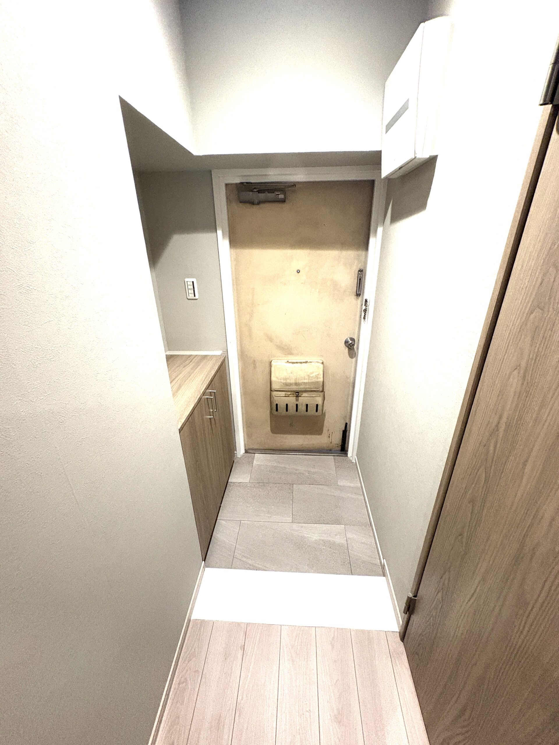・玄関フロアタイル張。下駄箱交換。分電盤交換。