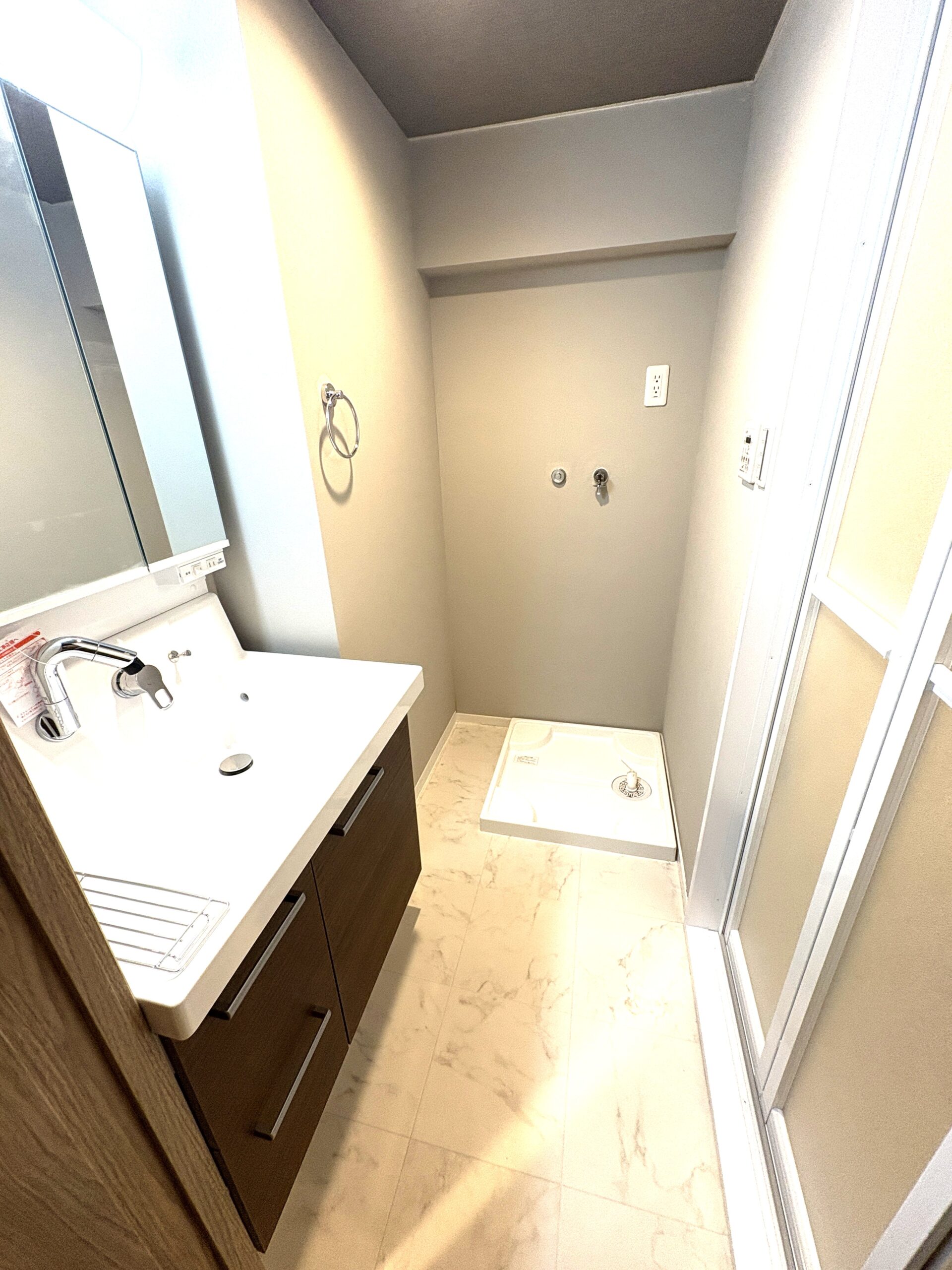 ・洗面化粧台、洗濯パン及び水栓金具交換。