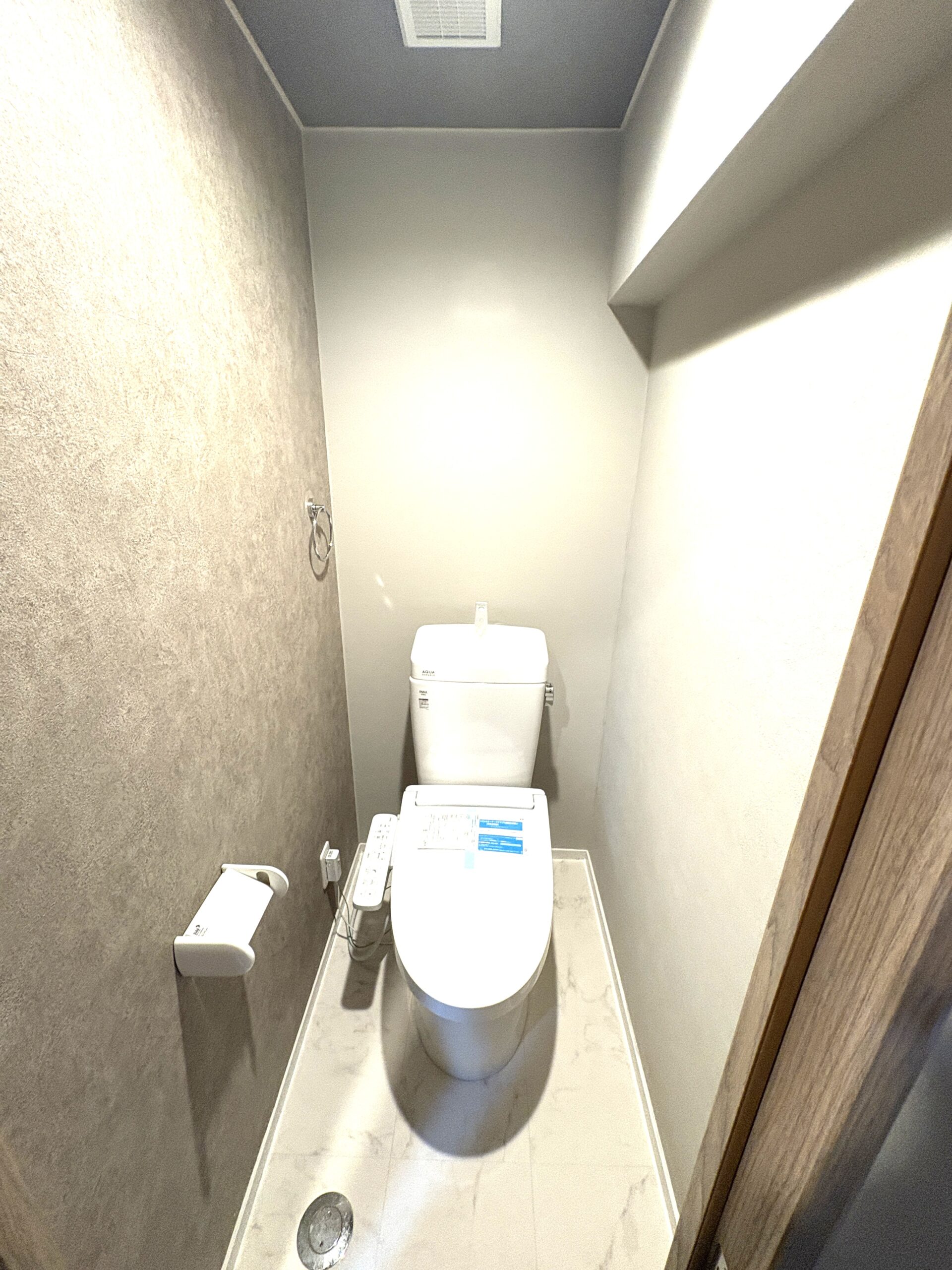・クロス全室貼替。トイレ側面にアクセントクロスを配置。
